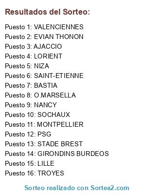 Lista de participantes: PSG, EVIAN THONON, GIRONDINS BURDEOS, SAINT-ETIENNE, BASTIA, STADE BREST, LILLE, NANCY, VALENCIENNES, O.MARSELLA, AJACCIO, NIZA, MONTPELLIER, LORIENT, TROYES, SOCHAUX.