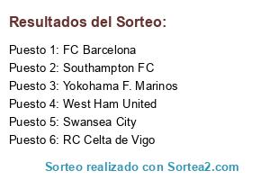 Lista de participantes: FC Barcelona, RC Celta de Vigo, Southampton FC, Swansea City, West Ham United, Yokohama F. Marinos.