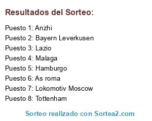 Lista de participantes: Anzhi, Lokomotiv Moscow, Bayern Leverkusen, Tottenham, Malaga, Hamburgo, As roma, Lazio.