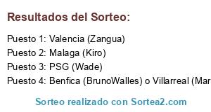 Lista de participantes: Canarion (AJAX), SuperMario84 (S.S. LAZIO), AlGuA (ATL. BILBAO), Arraez (VALENCIA), PabloAquino (JUVENTUS), j_Navarro (O. MARSELLA), Adonaii (SCHALKE 04), Wade (PSG).