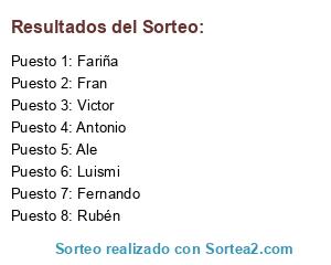 Lista de participantes: Ale, Antonio, Fariña, Fernando, Fran, Luismi, Rubén, Victor.