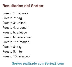 Lista de participantes: inter, r. madrid, leverkusen, atletico, liverpool, psg, united, city, arsenal, napoles.