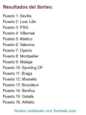 Lista de participantes: Oporto, Braga, Benfica, Sporting CP, Athletic, Atletico, Getafe, Malaga, Sevilla, Valencia, Villarreal, Losc Lille, Marsella, PSG, Bourdeux, Montpellier.