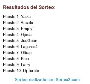 Lista de participantes: JuuGoon, Yaiza, Lagares4, Ojeda, Dj Torete, Ancalo, Larry, Empty, Olbap, Blea.