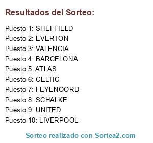 Lista de participantes: FEYENOORD, BARCELONA, SHEFFIELD, LIVERPOOL, CELTIC, VALENCIA, SCHALKE, ATLAS, EVERTON, UNITED.