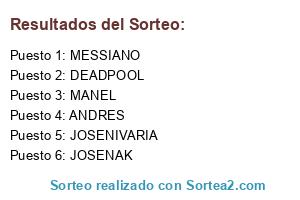 Lista de participantes: MANEL, DEADPOOL, MESSIANO, JOSENIVARIA, ANDRES, JOSENAK.