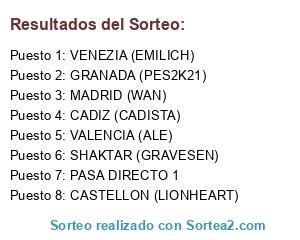 Lista de participantes: VENEZIA (EMILICH), CADIZ (CADISTA), VALENCIA (ALE), CASTELLON (LIONHEART).