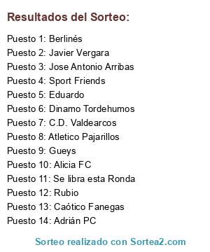 Lista de participantes: RUBIO, DINAMO TORDEHUMOS, C.D. VALDEARCOS, JAVIER VERGARA.