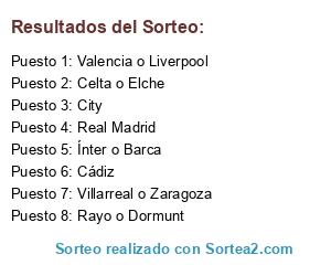 Lista de participantes: Valencia o Celta, Manchester City, Cádiz CF, Rayo Vallecano.