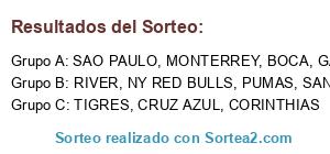 Lista de participantes: MONTERREY, PUMAS, TIGRES, CORINTHIAS, CRUZ AZUL, RIVER, BOCA, SANTOS, SAO PAULO, GALAXY, NY RED BULLS.