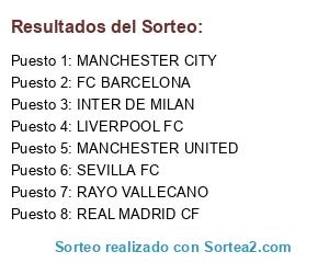 Lista de participantes: SEVILLA FC, REAL MADRID CF, LIVERPOOL FC, RAYO VALLECANO, FC BARCELONA, MANCHESTER UNITED, MANCHESTER CITY, INTER DE MILAN.