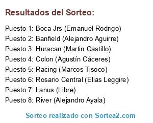 Resultados del sorteo: