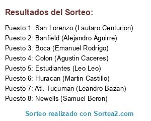 Resultados del sorteo: