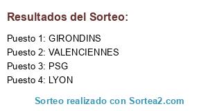 Lista de participantes: LYON, GIRONDINS, VALENCIENNES, PSG.