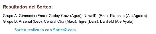 Lista de participantes: Independiente (Martin Castillo), Velez (Wosito), San Lorenzo (Ema Cuvillier), Talleres (Ale Aguirre), Argentinos Juniors (Daniel Alarcon), Estudiantes (Brian Demian), River Plate (Maxi Martin)4, Defensa y Justicia(Braian Faruch).