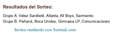 Lista de participantes: Boca Unidos, Comunicaciones, Velez Sarsfield, Peñarol, Atlanta, All Boys, Sarmiento, Gimnasia LP.