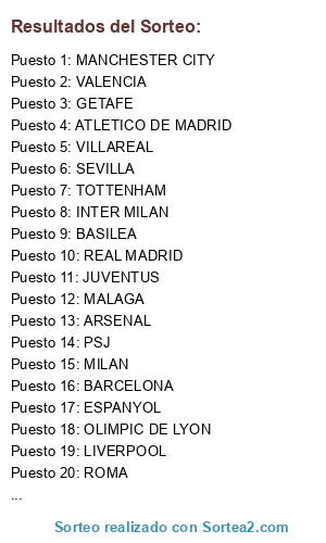 Lista de participantes: LYON, JUVE, PSJ, VALENCIA O BAYER, CITY O ROMA, MALAGA O SEVILLA.