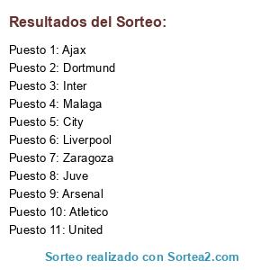 Lista de participantes: Malaga, Juve, Inter, Ajax, United, Dortmund, Liverpool, City, Arsenal, Zaragoza, Atletico.