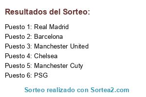 Lista de participantes: PSG, Barcelona, Manchester Cuty, Chelsea, Manchester United, Real Madrid.
