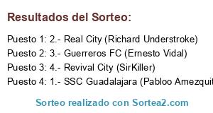 Lista de participantes: 1.- SSC Guadalajara (Pabloo Amezquita), 2.- Real City (Richard Understroke), 3.- Guerreros FC (Ernesto Vidal), 4.- Revival City (SirKiller).