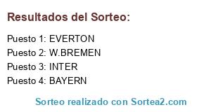 Lista de participantes: BAYERN, W.BREMEN, EVERTON, INTER.