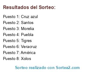 Lista de participantes: América, Veracruz, Tigres, Cruz azul, Xolos, Puebla, Santos, Morelia.