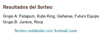 Lista de participantes: Juniors, Futuro Equipo, Gañanes, Kubo King, Patapum, Roca.