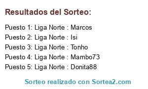 Lista de participantes: Liga Norte : Oskarkawa, Liga Norte : Sego, Liga Norte : Sebastian Genio, Liga Norte : Yazsegundo, Liga Norte : Ravenarchi, Liga Norte : Padrone.