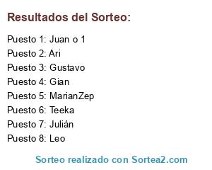 Lista de participantes: Julián, Juan o 1, Teeka, MarianZep, Ari, Gian, Gustavo, Leo.