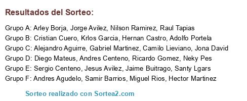 Lista de participantes: Cristian Cuero, Jona David, Ricardo Gomez, Samir Barrios, Jaime Buitrago, Neky Pes, Gabriel Martinez, Andres Agudelo, Raul Tapias, Jorge Avilez, Hernan Castro, Santy Lgars, Sergio Centeno, Adolfo Portela, Andres Centeno, Hector Martinez, Miguel Rios, Diego Mateus, Krlos Garcia, Camilo Lieviano, Nilson Ramirez, Jesus Avilez, Arley Borja, Alejandro Aguirre.