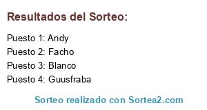 Lista de participantes: Guusfraba, Andy, Facho, Blanco.