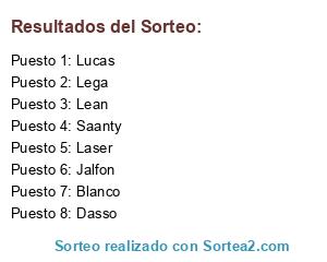 Lista de participantes: Jalfon, Lega, Blanco, Lean, Laser, Lucas, Saanty, Dasso.