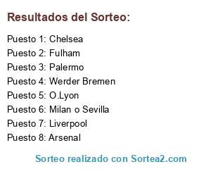 Lista de participantes: Chelsea, Liverpool, Fulham, O.Lyon, Werder Bremen, Palermo, Arsenal, Milan o Sevilla.