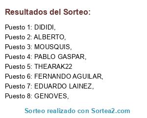 Lista de participantes: MOUSQUIS,, FERNANDO AGUILAR,, PABLO GASPAR,, EDUARDO LAINEZ,, GENOVES,, DIDIDI,, ALBERTO,, THEARAK22.