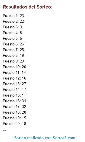 Resultados del sorteo: