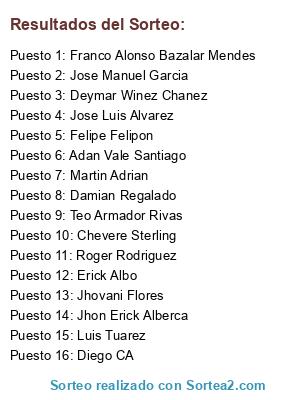 Lista de participantes: Adan Vale Santiago, Chevere Sterling, Damian Regalado, Deymar Winez Chanez, Diego CA, Erick Albo, Felipe Felipon, Franco Alonso Bazalar Mendes, Jhon Erick Alberca, Jhovani Flores, Jose Luis Alvarez, Jose Manuel Garcia, Luis Tuarez, Martin Adrian, Roger Rodriguez, Teo Armador Rivas.