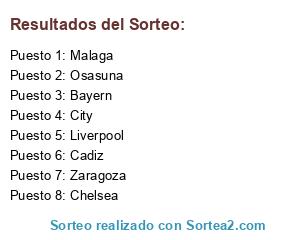 Lista de participantes: Bayern, Liverpool, Malaga, Zaragoza, Chelsea, City, Cadiz, Osasuna.