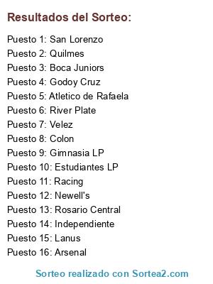 Resultados del sorteo: