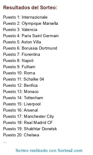 Resultados del sorteo: