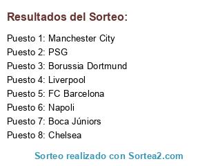 Lista de participantes: Boca Júniors, Chelsea, Liverpool, Manchester City, Borussia Dortmund, Napoli, PSG, FC Barcelona.