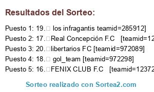 Resultados del sorteo: