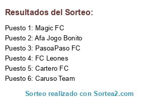 Lista de participantes: FC Leones, Magic FC, PasoaPaso FC, Cartero FC, Afa Jogo Bonito, Caruso Team.