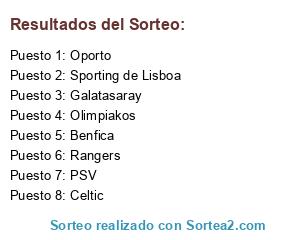 Lista de participantes: Celtic, Panatinaikos , Glasgow Rangers, Benfica, Oporto, Galatasaray, Twente, PSV.