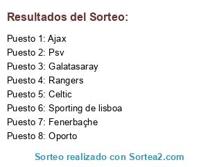 Lista de participantes: Ajax, Celtic, PSV, Fernerbache, Porto, Benfica, O.Lyon, PSG.