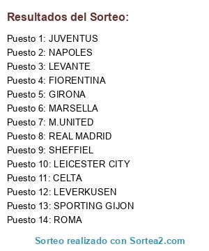 Lista de participantes: ZARAGOZA, ROMA, LEVANTE, AT.BILBAO, FIORENTINA, LEICESTER CITY, NAPOLES, VALENCIA, GIRONA, SHEFFIEL, BENFICA, LEVERKUSEN, SPORTING GIJON, JUVENTUS, GRANADA, LIVERPOOL, MARSELLA, AJAX, RECREATIVO, MALAGA, M.UNITED, TENERIFE, CELTA, REAL MADRID.