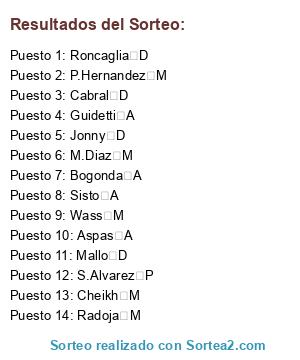 Resultados del sorteo: