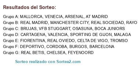 Lista de participantes: Villarreal, Chelsea, Brujas, VLF Wolfsburg, Real Betis, Burgos, Manchester United, Barcelona, Boca Juniors, Feyenoord, Venecia, Fiorentina, Málaga, LOSC Lille, Deportivo, Liverpool.