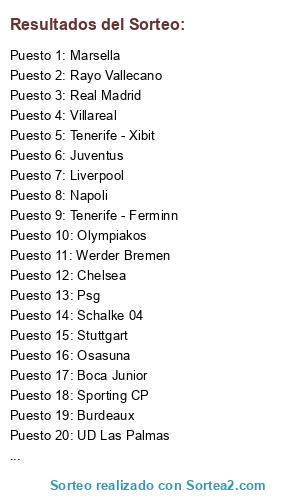 Lista de participantes: Burdeaux, Juventus, Real Madrid, Totenham, Rayo Vallecano, UD Las Palmas, Benfica, Bayern Munich, Deportivo La Coruña, Liverpool, Sporting CP, Napoli, Betis, Boca Junior, Chelsea, Werder Bremen, Borussia Dortmund, Fiorentina, Zaragoza, Stuttgart, Osasuna, Marsella, Villareal, Psg, Tenerife - Xibit, Tenerife - Ferminn, Schalke 04, Olympiakos.