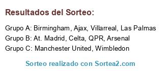 Lista de participantes: At. Madrid, Las Palmas, QPR, Villarreal, Manchester United, Ajax, Birmingham, Arsenal, Wimbledon, Celta.