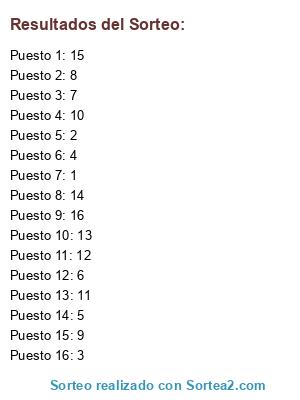 Resultados del sorteo: